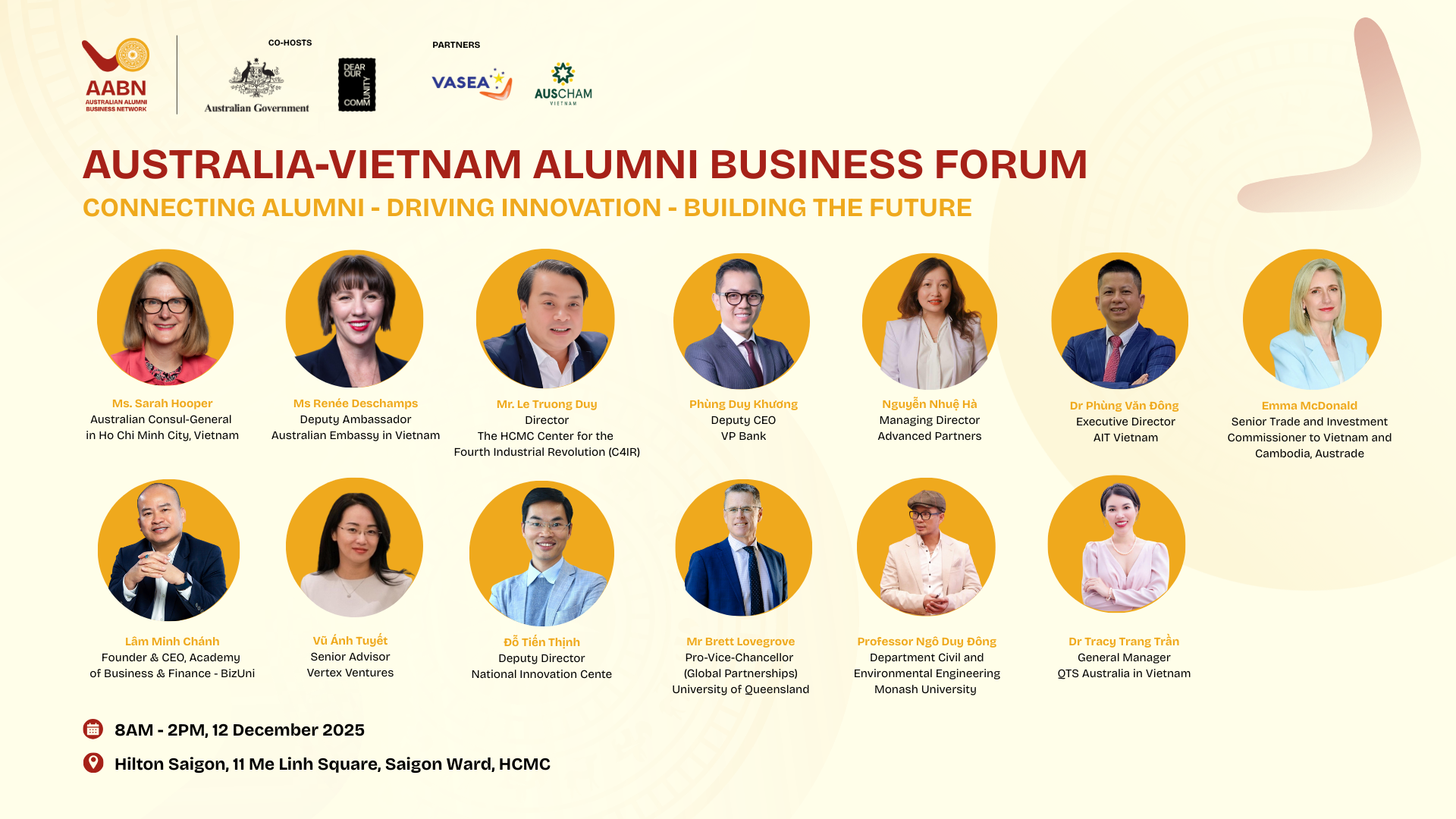 The Australian Alumni Business Network (AABN) invites you to our flagship “Australia–Vietnam Alumni Business Forum: Connecting Alumni – Driving Innovation – Building the Future” to strengthen Vietnam-Australia bilateral collaboration in education and digital economy and where you can meet 150+ alumni working across sectors in Vietnam to explore partnerships and discuss business.